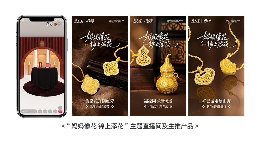 在内容呈现上,主播以生动且富有情感的语言介绍产品,讲述每一款黄金点钻饰品背后的设计理念,将其与母爱主题紧紧相连,并亲身演绎不同场合的佩戴效果。