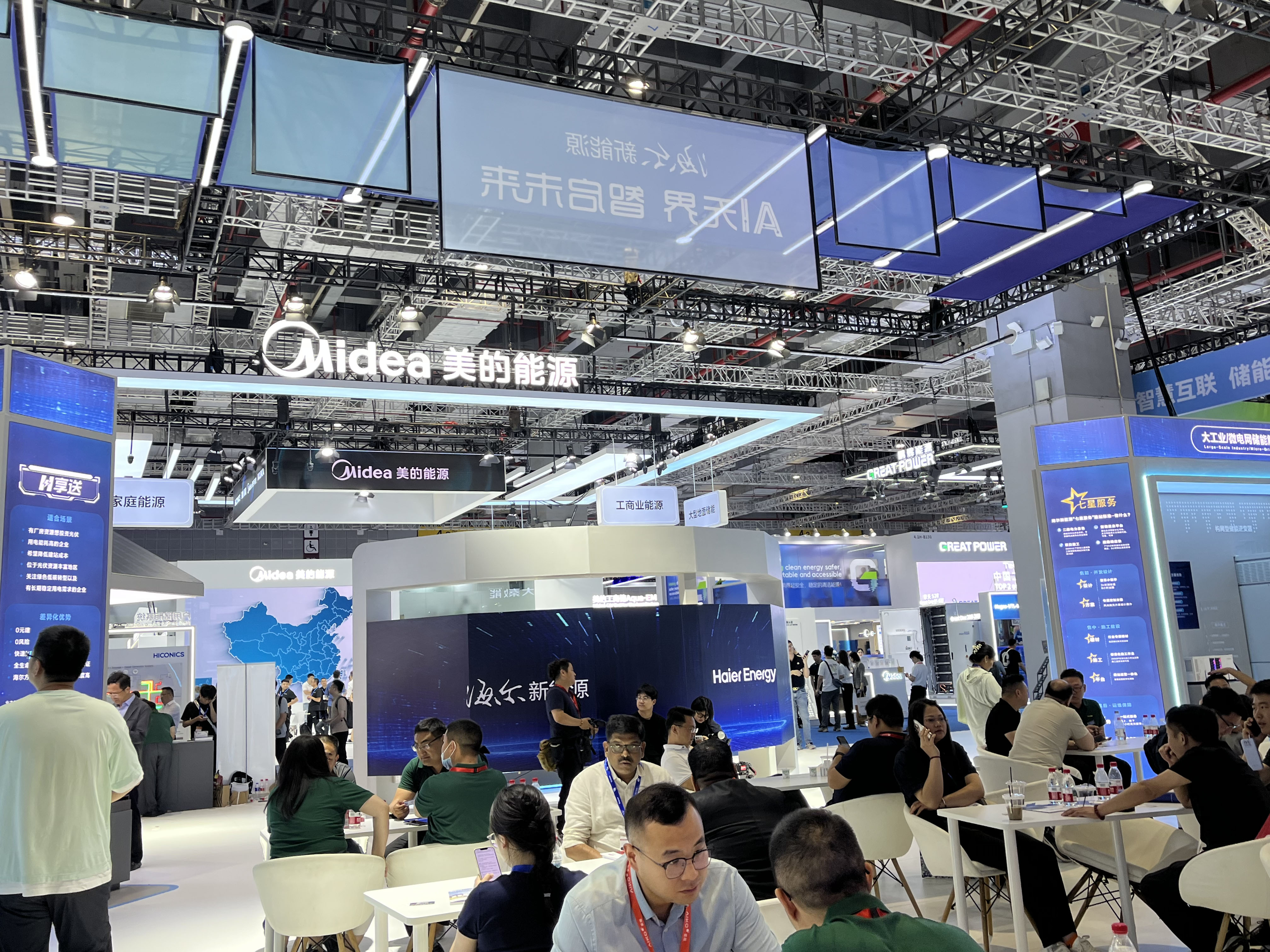 界面新闻在“逆变器、电源、储能装备及系统”馆,看到了美的、海尔、奥克斯、格力、创维等知名品牌。他们将新能源作为公司发展新增长极。