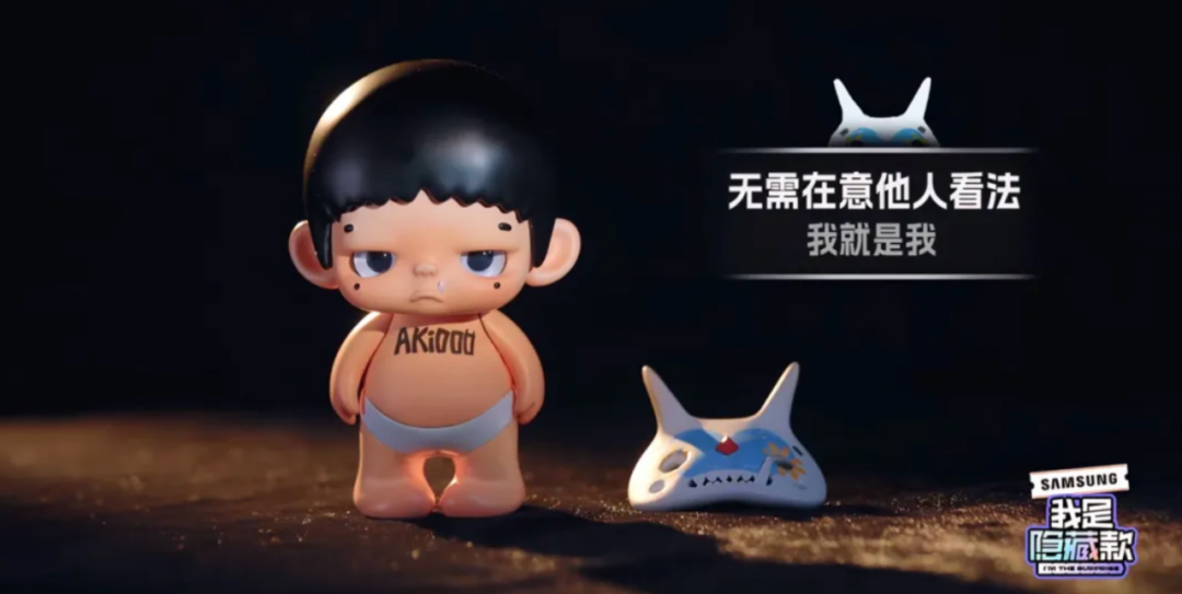 而最近行业关注比较多的一次合作,就是犀牛君此前曾发文评析过的优酷出品号称“全宇宙首档娃综”的《我是隐藏款》。该节目算是领跑行业最先洞察到潮玩市场的火爆趋势,第一次将各类潮玩IP和其背后的优秀设计师们推至大众舞台,节目最终选出的总冠军“丑萌娃娃”内小孩Akidoo与Labubu的设计理念也有异曲同工之妙,节目借大胆对容貌焦虑说不的丑萌娃娃喊出了Z世代想自主定义审美权、活出千人千面真实自我的新时代呼声。