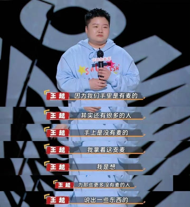 “我很害怕自己忘记当初为什么想要站上舞台讲这些东西,害怕变得妄自菲薄,不知道自己几斤几两。”这是一个非常女性的自审时刻,王越像是能预料到什么,因此她开始提前行动。