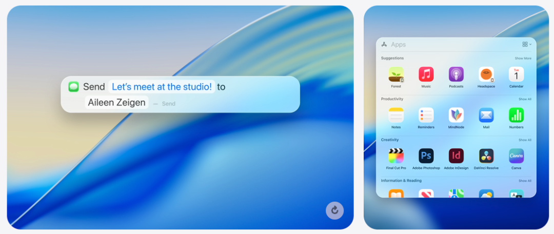 在苹果的展示中,用户可以在macOS Tahoe的Spotlight中,调用多种功能完成发送邮件、创建笔记、播放音乐等任务。一旦新Siri上线,这个功能很可能会成为新Siri的执行能力界面,一个属于苹果的、类似MCP的AI能力集合。这也会需要更多第三方能力的供给。