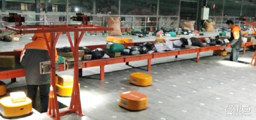 图为海康快递分拣机器人应用场景