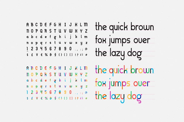 这个字体以Gilbert Baker命名,由LGBTQ公益组织NewFest、NYC Pride,联合奥美广告及字体设计公司Fontself联合设计。从字体本身的配色就可以看出,它沿袭了彩虹旗的基调,但是也加入了一些现代设计扁平化的设计风格。Gilbert字体最要是用于“骄傲日”及其他公众场合,制作海报货横幅标语。
