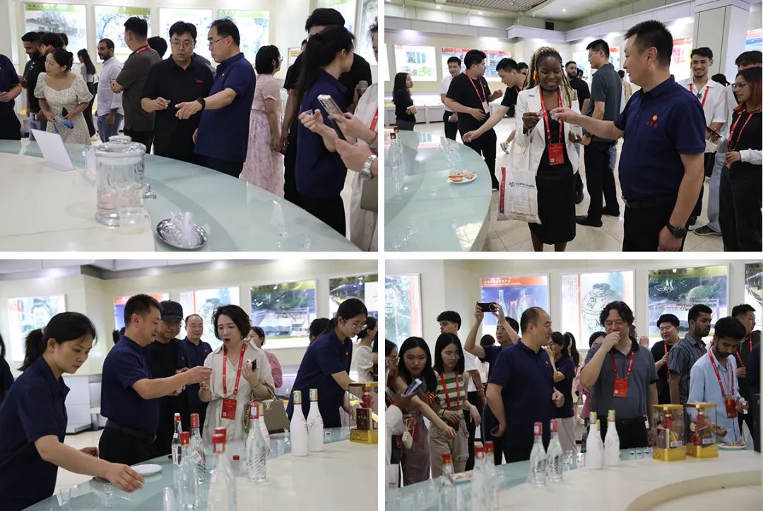 调研的高潮无疑是现场品鉴环节。在精心布置的古贝春酒文化馆品鉴区,古贝春核心单品——酱香白版、浓香白版、陈年原酒等经典佳酿依次呈现。讲解员引导大家观色、闻香、品味。当琥珀色的琼浆滑入杯中,馥郁优雅的香气瞬间俘获了众人的嗅觉。浅酌入口,酒体的醇厚丰满、诸味协调、回味悠长,引发了国际客商们一阵阵由衷的赞叹。