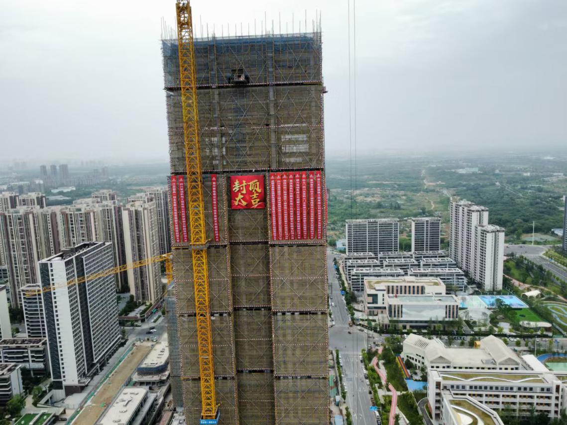 6月16日,驿都天街180米光年魔方地标塔楼项目建设现场能看到,随着项目的封顶,塔楼已经初现雏形。