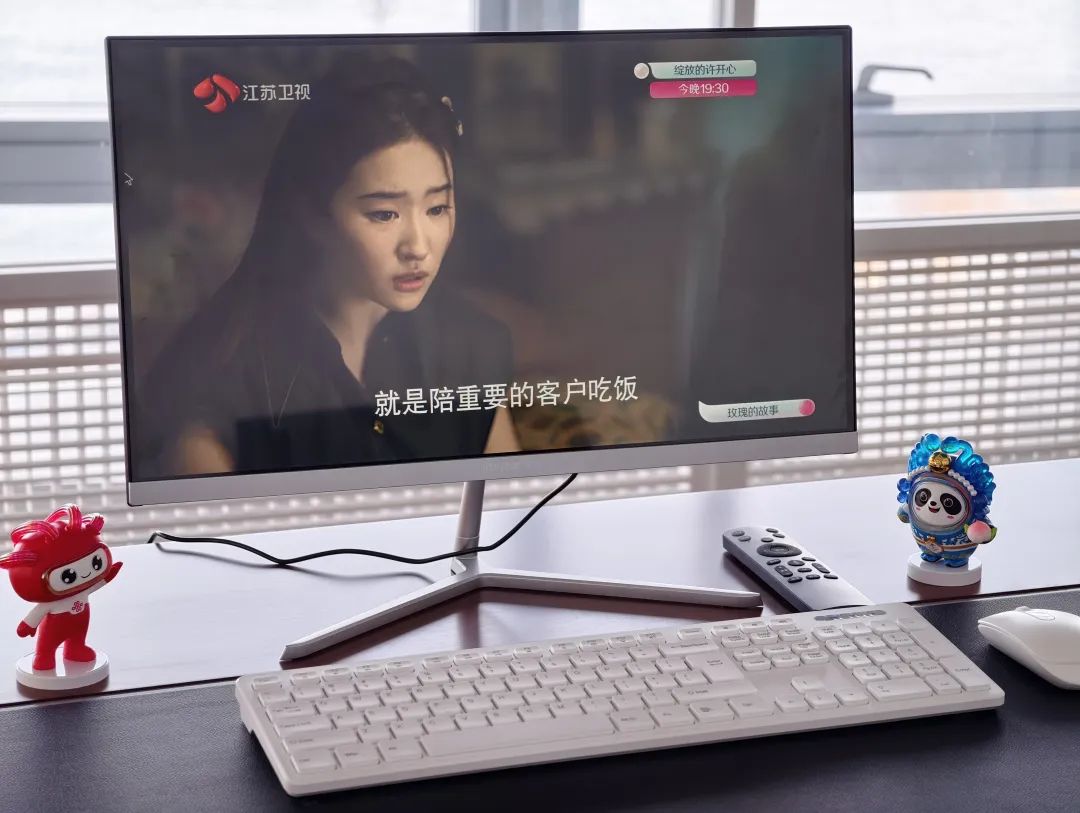 云电脑一体机具备完整的电脑功能(云端运行,8核16G内存180G存储,可以插U盘,接外设),同时还是一台电视机,可以直接看央视和卫视的直播节目,集成了各种大片、电视剧,还有综艺、儿童节目等内容,兼顾了办公娱乐休闲。