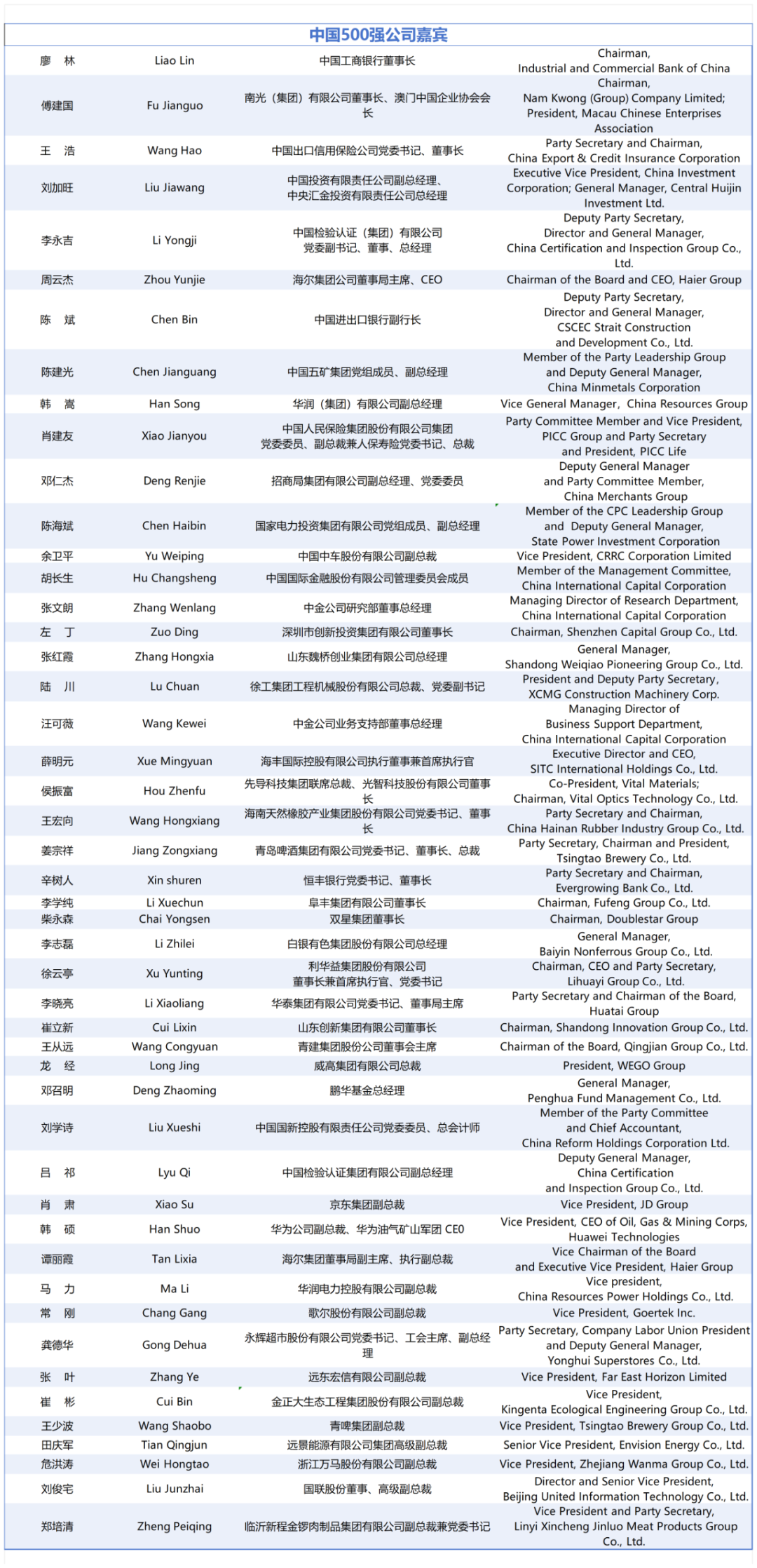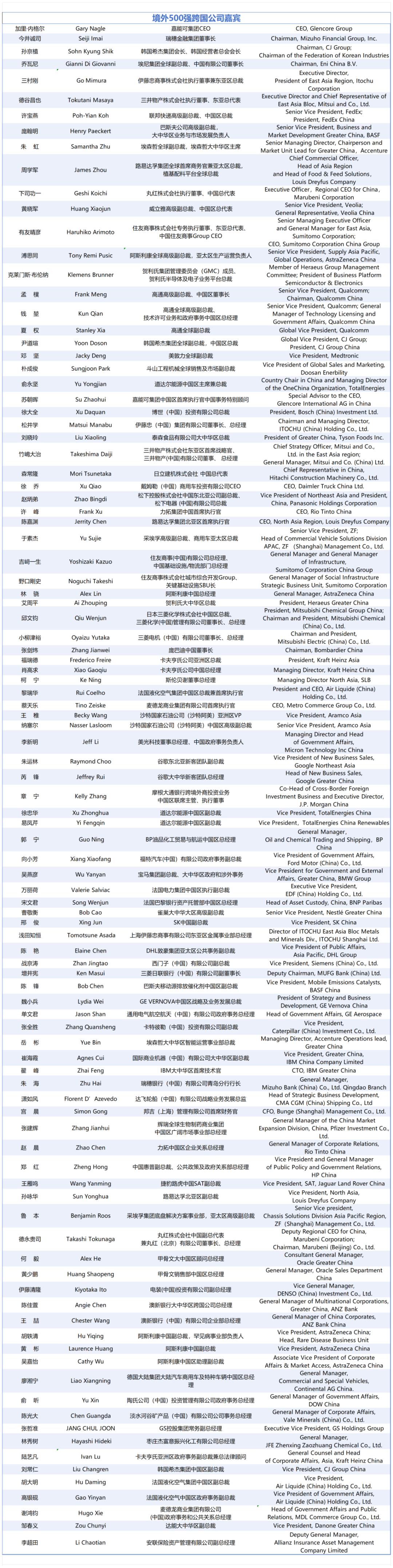 第六届跨国公司领导人青岛峰会得到全球跨国公司广泛关注和积极响应,共有43个国家和地区的570位跨国公司嘉宾参会。现公布部分嘉宾名单: