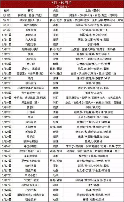 5月进口片中,除了上述提到的《加勒比海盗5》,从5月5日起,还会有《银河护卫队2》、《摔跤吧!爸爸》《超凡战队》《亚瑟王:斗兽争霸》《异星觉醒》和《守护者:世纪战元》陆续被引进。从档期看,可以说5月周周都有大制作进口片公映。