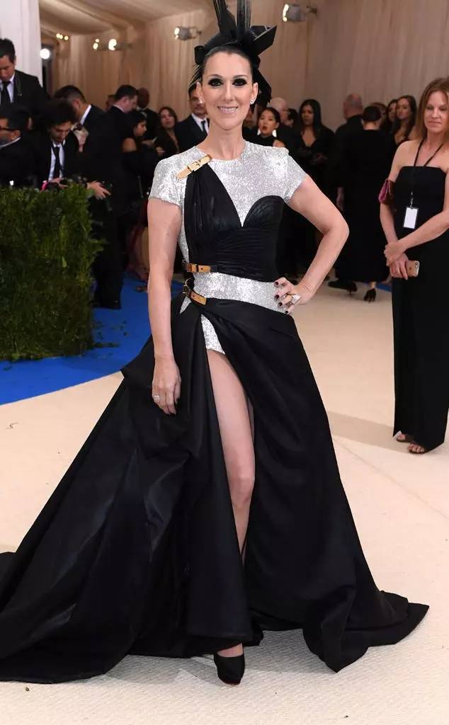 将近五十的殿堂级女歌手席琳·迪翁宝刀未老,银色闪亮紧身衣和黑色丝缎长裙让她看起来充满朝气,高叉飘逸的裙摆既增添几分性感,又能秀出她的细直长腿。但是那几个金属扣却有点像以前晾衣服用到的木夹子,感觉有点怪怪的。