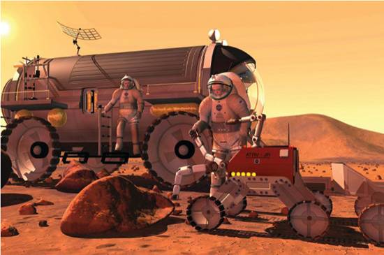 航天员在火星表面开展地质考察,人与机器人的相互协作是必然需要