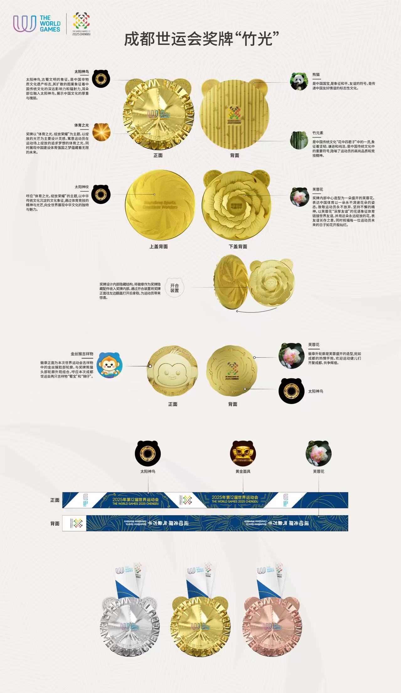 当胜利的光芒与分享的温暖相遇,2025年第12届世界运动会(以下简称“成都世运会”)奖牌“竹光”给出了最动人的诠释。6月19日,承载着独特“分享”理念与深厚敬意的赛事奖牌——“竹光”正式亮相!