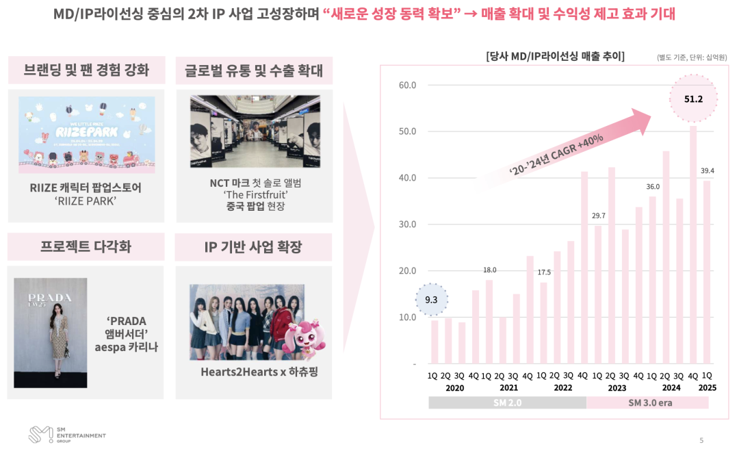 韩娱公司MG在财报中指出:以MD/IP 授权为核心的IP二次开发业务,是“新的增长动力”。以此“有望扩大销售额并提升营收能力,强化品牌与粉丝体验,扩大全球流通与出口”。