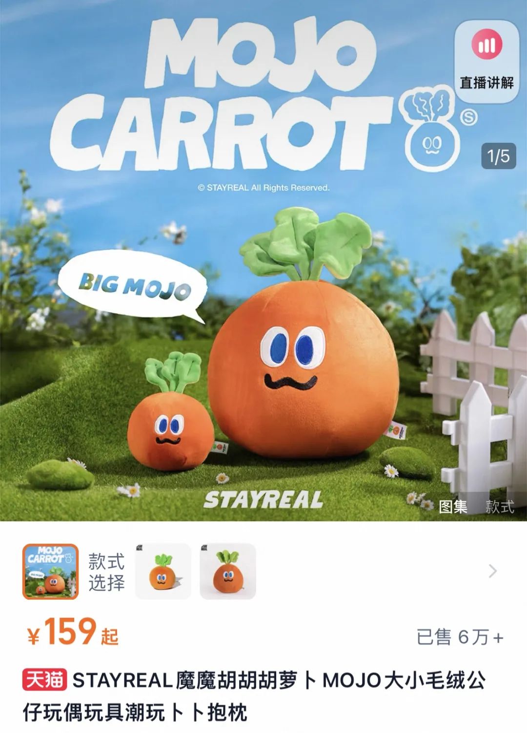 五月天的衍生品牌STAYREAL和胡萝卜造型IP“卜卜”已经是电商热卖榜上的常驻嘉宾。去年双11,卜卜毛绒玩具登榜天猫毛绒玩具畅销榜TOP3,仅次于JELLYCAT 和迪士尼。