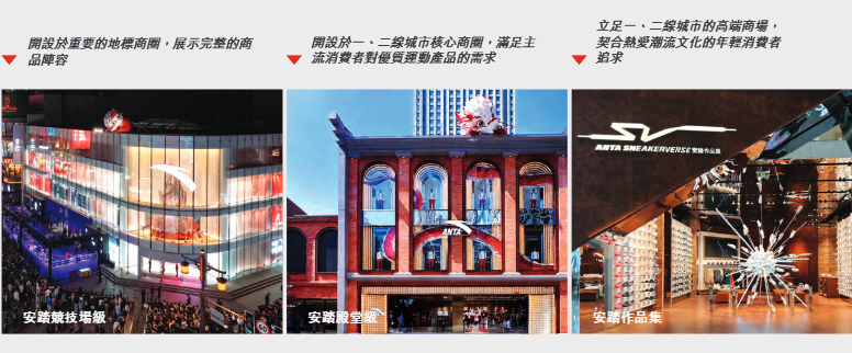 在徐阳回归之后,相比过去“千店一面”的零售战略,安踏发展出更多更具针对性的新业态,例如安踏竞技场级、安踏殿堂级、安踏冠军、安踏作品集及超级安踏等配备不同的产品和定位的门店类型,力求“把安踏越做越小”。