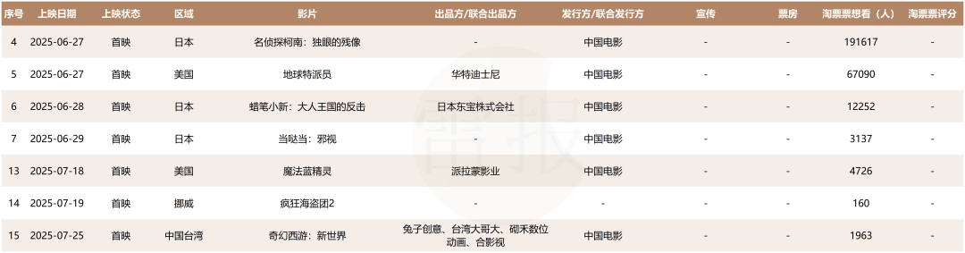 经典儿童文学IP正探索跨界资源整合新模式。定档7月5日的《皮皮鲁和鲁西西之309暗室》集结了童话大王影视(郑渊洁品牌运营方)、金鹰卡通(湖南广电旗下少儿频道)、华夏聚德等9家出品方,在暑期档国产动画出品方数量上仅次于《罗小黑战记2》。但需注意,尽管有金鹰卡通这样的头部少儿频道背书,截至发稿日12时,该片淘票票想看人数仅5976人,显著低于《聊斋:兰若寺》(41202人)等头部作品,折射出儿童文学IP院线转化仍存挑战。