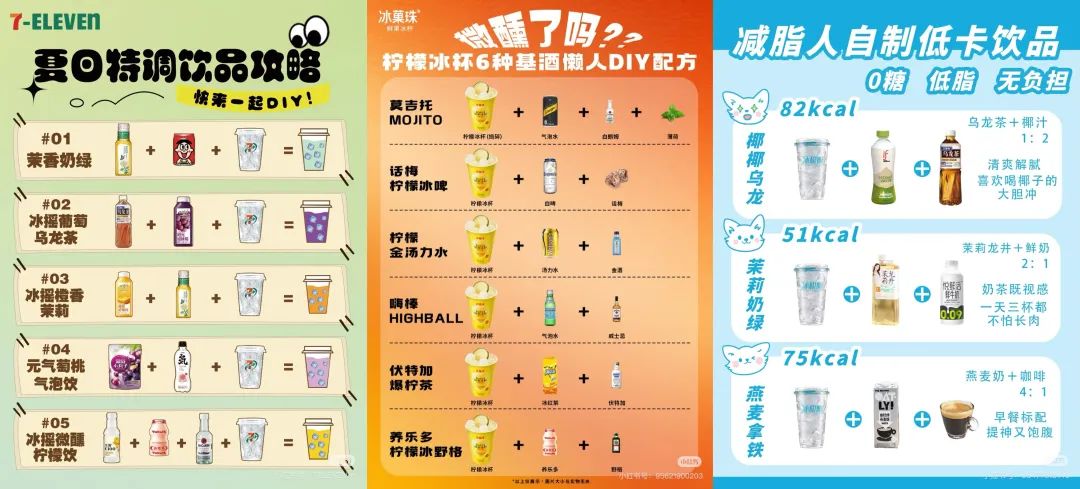 与直接购买茶饮店或酒馆成品相比,这种DIY体验不仅价格更可控,更能获得“亲手完成”的情绪价值。不少商家也根据这一消费需求,推出了一系列跟自家冰杯搭配的“饮品特调公式”,给消费者提供选择和灵感。