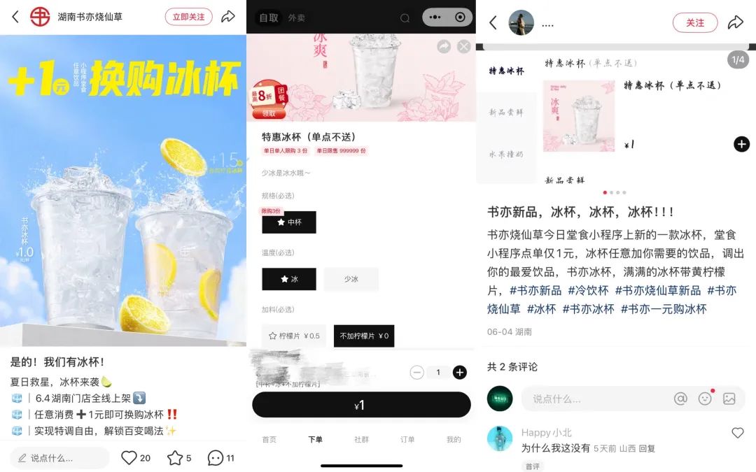 就在前几天,书亦烧仙草在湖南门店推出“1元冰杯”,消费者任意消费+1元就能换购,+1.5元还能换购柠檬冰杯,且支持线上点购。