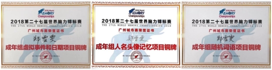 同年12月参加世界记忆锦标赛全球总决赛获得“世界记忆大师”证书。