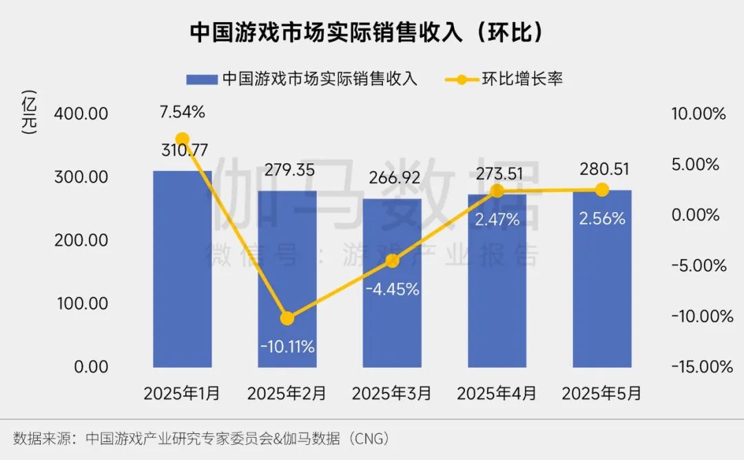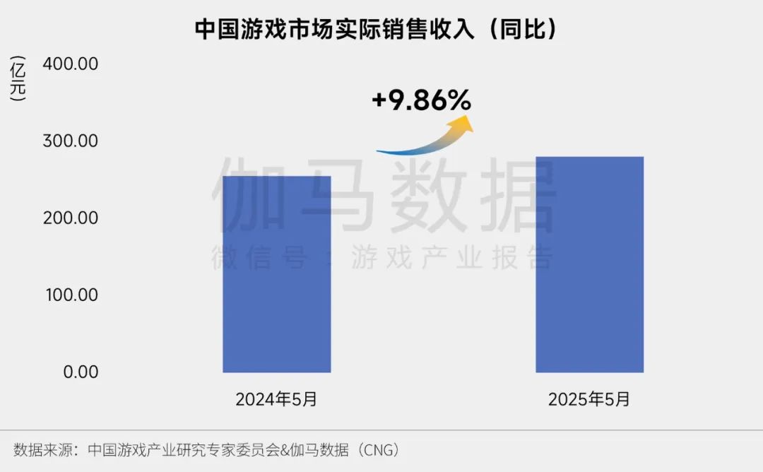 2025年5月游戏市场规模同比增9.86%至280.51亿元