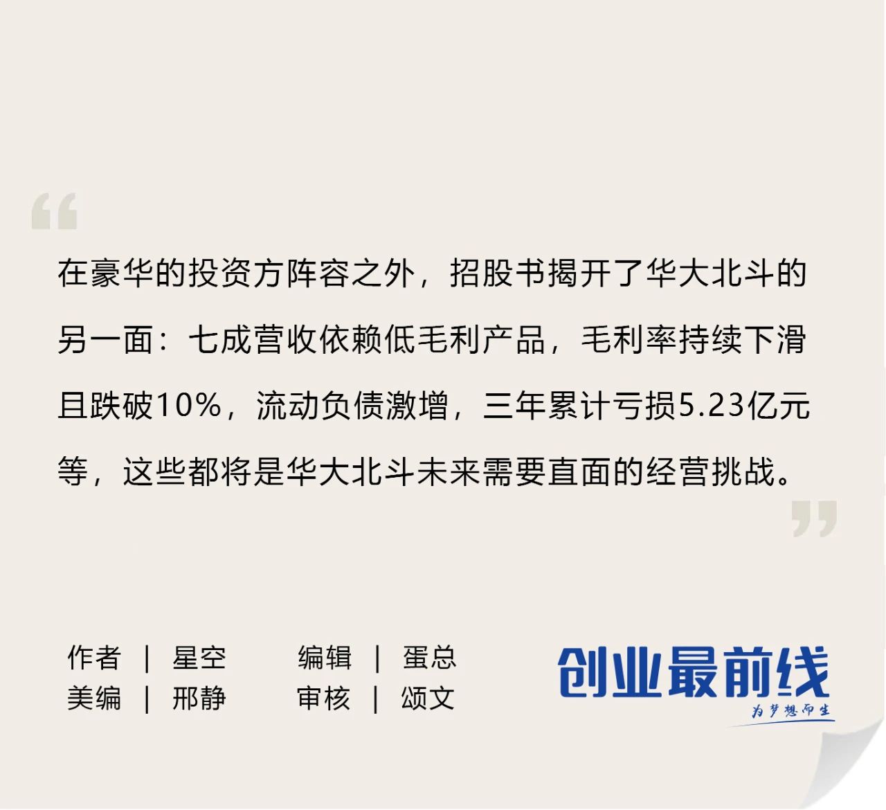 但招股书也揭开了华大北斗的另一面:七成营收依赖低毛利产品,毛利率持续下滑且跌破10%、流动负债激增、三年累计亏损5.23亿元等,都将是华大北斗未来需要直面的经营挑战。