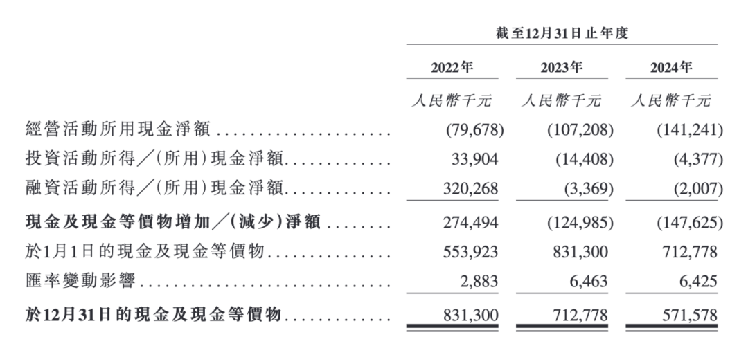 各期末的现金及现金等价物逐年减少,分别约为8.31亿元、7.13亿元和5.72亿元。经营性现金流净额连续3年为负,分别为-7967.8万元、-1.07亿元和-1.41亿元。