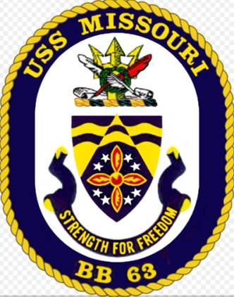 这艘船编号BB-63,美国依阿华级战列舰三号舰——密苏里号。