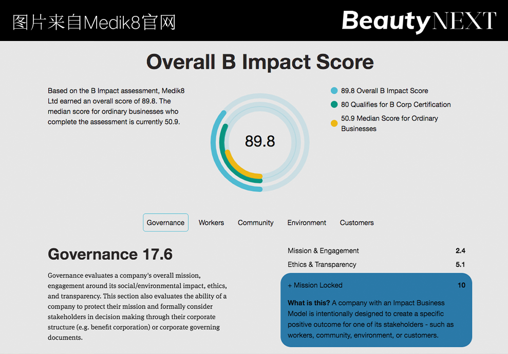 2023年,Medik8成功获得B Corp认证,总体分数为89.8分。