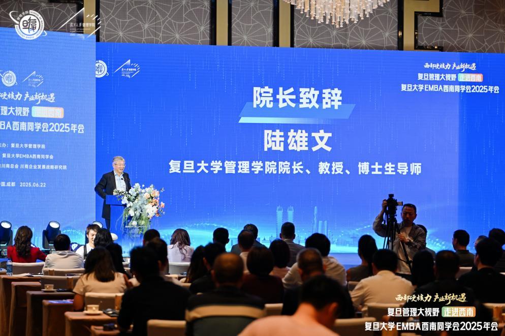 这里有丰富的民族风情和巴蜀文化的深厚底蕴,随着国家战略布局与西部大开发的不断推进,这片广袤的土地正在迎来转型发展的黄金机遇。6月22日,复旦管院“管理大视野”走进西南暨复旦大学EMBA西南同学会2025年会在成都成功举办。复旦大学管理学院院长陆雄文,复旦大学管理学院兼职教授、国家金融与发展实验室特聘高级研究员邵宇,复旦大学管理学院兼职教授徐晓冬等学者专家、政企代表与企业精英,围绕“西部硬核力 产业新机遇”主题,共探西部产业发展的核心命题。