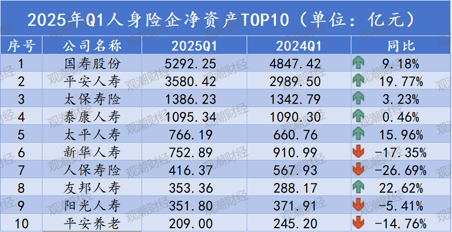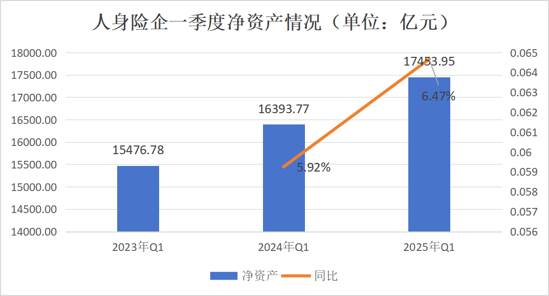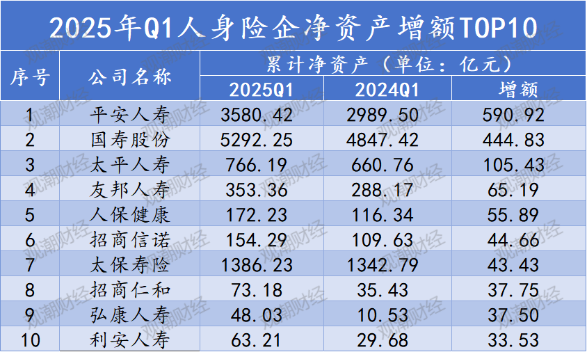 2025年Q1人身险企净资产持续增加,净资产比率变化明显。