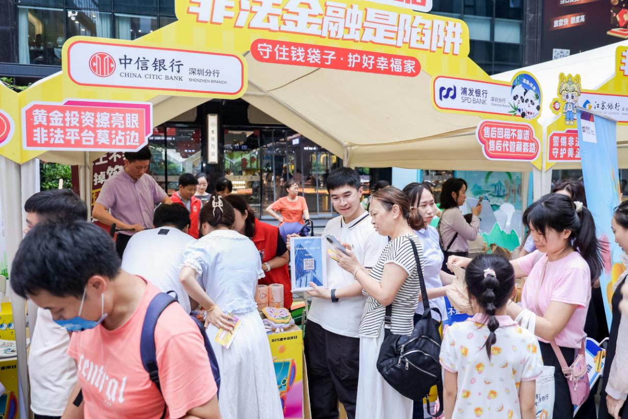 为认真贯彻落实国家防范和打击非法金融活动部际联席会议办公室部署要求,强化黄金交易领域风险防控,规范金融市场秩序,在国家金融监督管理总局深圳监管局、深圳市地方金融管理局的指导下,由深圳市银行业协会主办,深圳市居民金融素养提升工程办公室、罗湖区发展和改革局、翠竹街道办事处支持的“守住钱袋子·护好幸福家”2025年防范非法金融活动集中教育活动于6月15日在罗湖区成功举办。中信银行深圳分行作为成员单位,与全市多家银行机构携手,依托专业金融服务优势,通过创新教育形式与深度知识普及,为市民筑牢黄金投资安全防线。