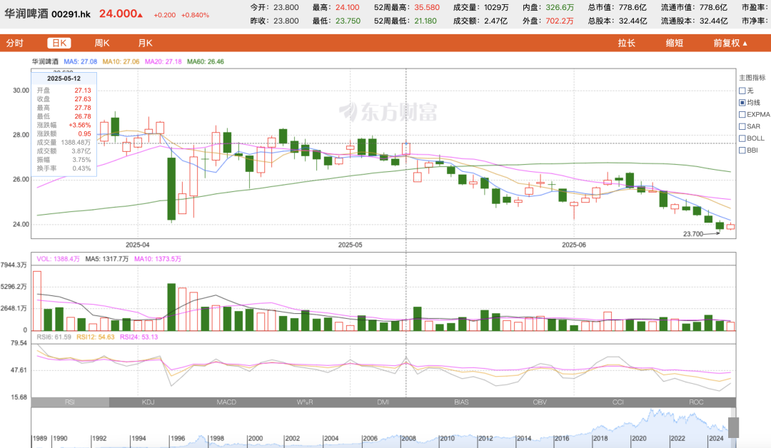 5月7日,侯孝海减持华润啤酒63.8万股,每股作价28.04港元,总金额约为1788.95万港元。5月12日,侯孝海以每股均价27.43港元再度减持华润啤酒30万股,涉及金额约822.9万港元。