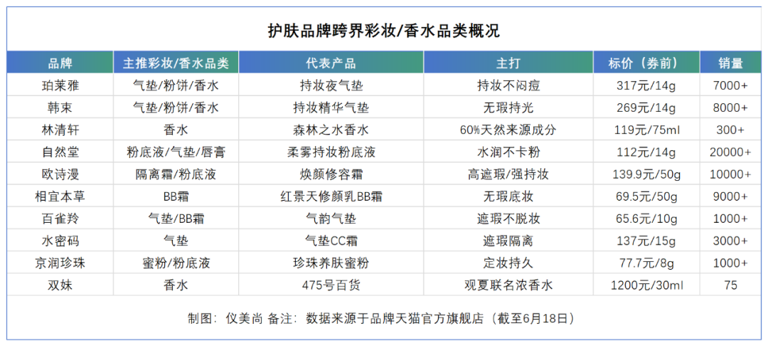 定价策略:护肤品牌跨界普遍走大众价格线,彩妆品牌入局护肤主打中高端