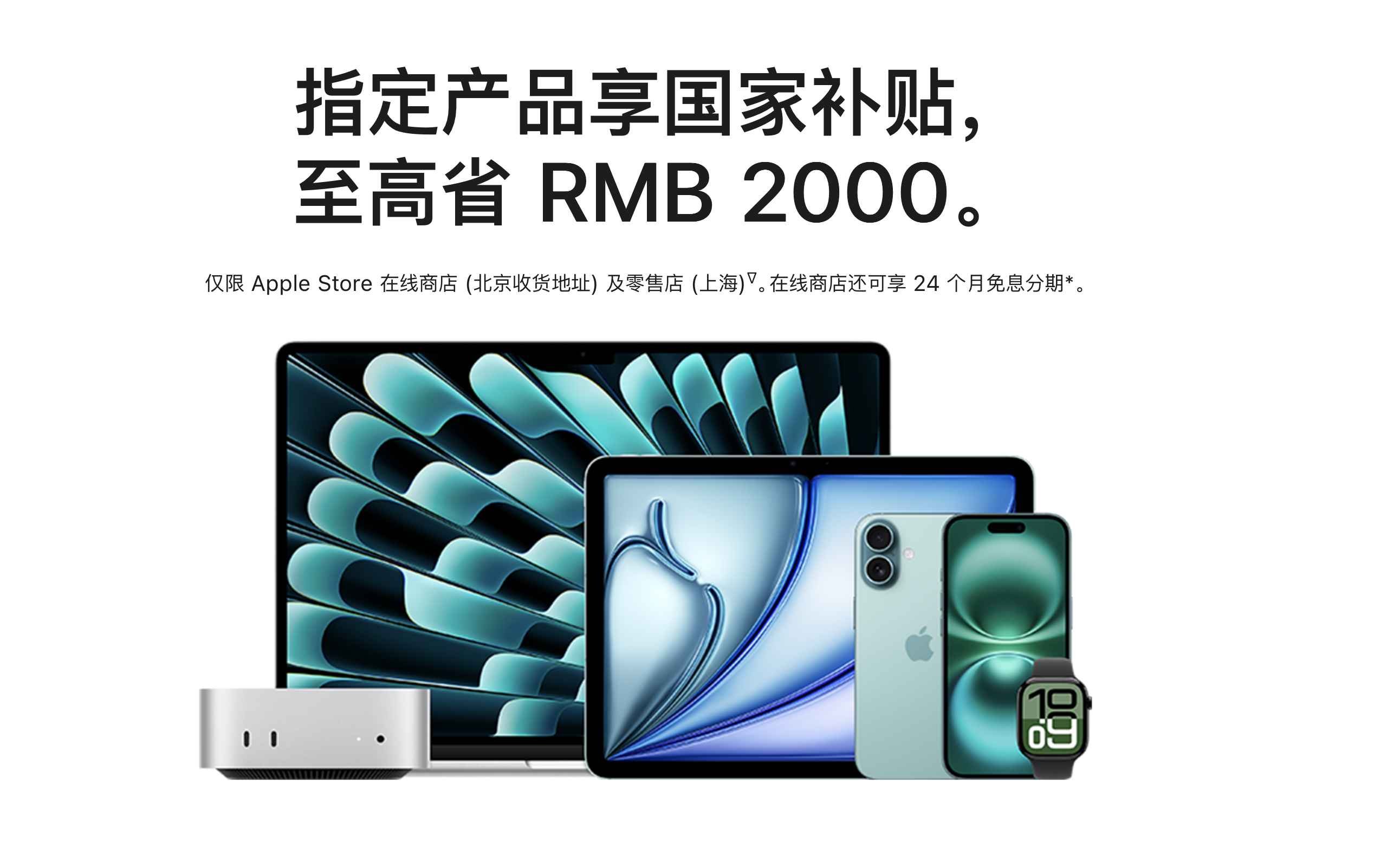 6月24日消息,苹果官网首次支持国补,活动页面显示,指定产品享国家补贴至高省2000元。其中,符合资格的消费者购买参与活动的iPhone、iPad、Apple Watch时,可享商品到手价基础上再立减15%的国家补贴,每件补贴不超过500元,仅限到手价不超过6000元的单件商品;购买参与活动的Mac时,可享商品到手价基础上再立减20%的国家补贴,每件补贴不超过2000元。