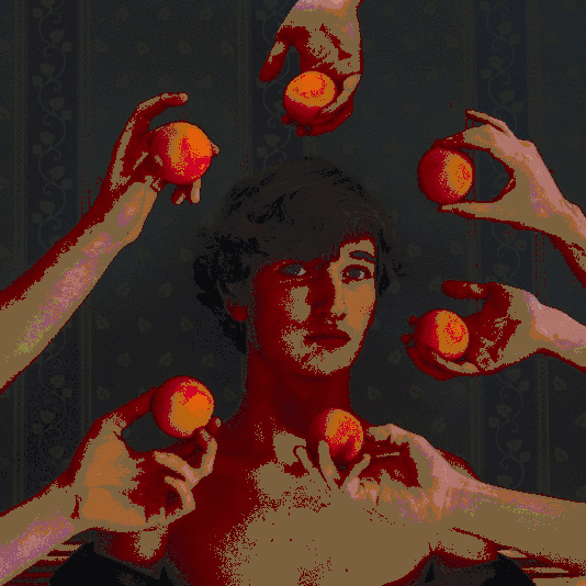 朴素的几何形状游泳池产生了一种强烈的视觉效果,显眼处还有苏联时期典型的集体主义标语,作为人物的女性形象做出各种游泳的姿势,仿佛被抽离了所有情感的模特一般,但鲜红的泳帽依然让她们在背景中脱颖而出。干净的表面下有一种安静而强烈的情感,在怀旧的氛围中投射出来。