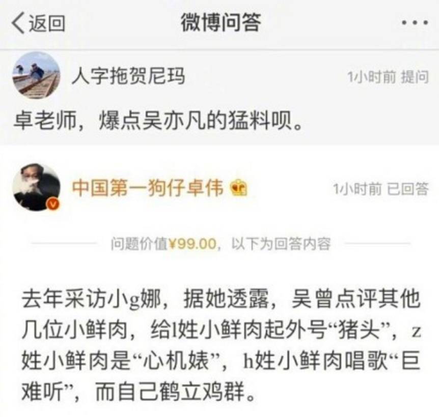 明明“全明星探”才是整个工作室的官微和发声平台,卓伟却经常通过个人微博爆料,微博问答、知乎live更是家常便饭,每天选答的微博问题围观人数有几千人,知乎live10块钱一场,有一万六千名观众,长期下来不仅是一笔可观的外快,还抢了整个工作室的风头,将工作室价值都转移到了个人身上。