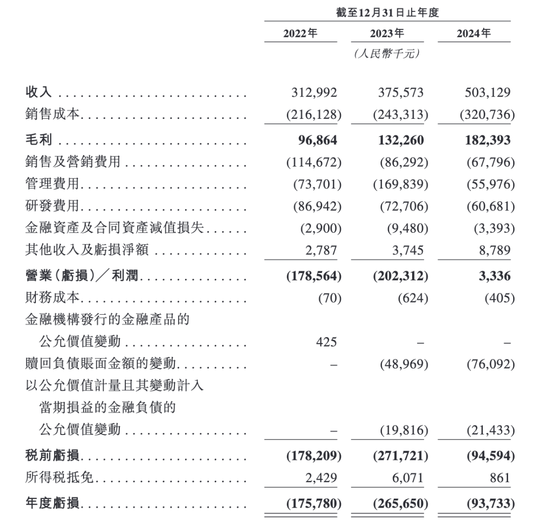 报告期内,公司年度亏损分别为1.76亿元、2.66亿元及9373.3万元,3年累计亏损约为5.35亿元。调整后年度净亏损或利润分别为-1.43亿元、-8370.4万元及1693.2万元,调整后2024年扭亏为盈。