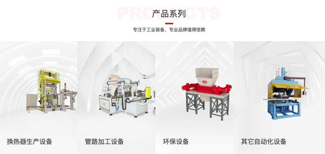 奥美森的主营产品换热器生产智能设备,主要用于家用空调、商用空调、空气能热泵、数据中心机房空调等制冷制热设备生产流程中换热器(包括蒸发器、冷凝器)的加工生产。