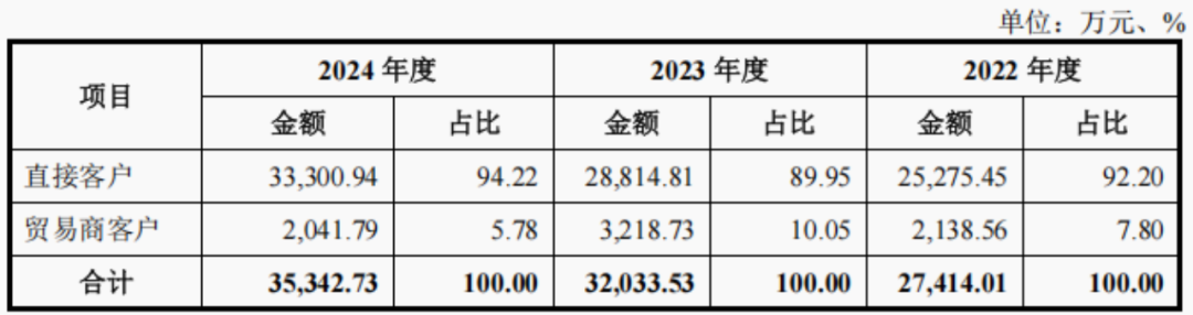 《招股书》显示,报告期内,奥美森产品的销售模式为直销,不存在经销模式。公司的客户包括直接客户和贸易商客户,并以直接客户为主。公司解释这是长期以来形成的模式,适合公司生产经营特点。然而,纯直销模式下,公司的客户波动性非常大。