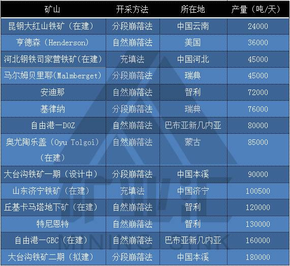 国内没有同类矿山设计先例,世界范围内,只有瑞典基律纳铁矿与大台沟铁矿在资源储量、矿山规模、矿体埋深等方面相似。