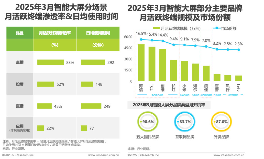 2025Q1智能大屏终端规模达3.39亿台,日均开机时长同比上升