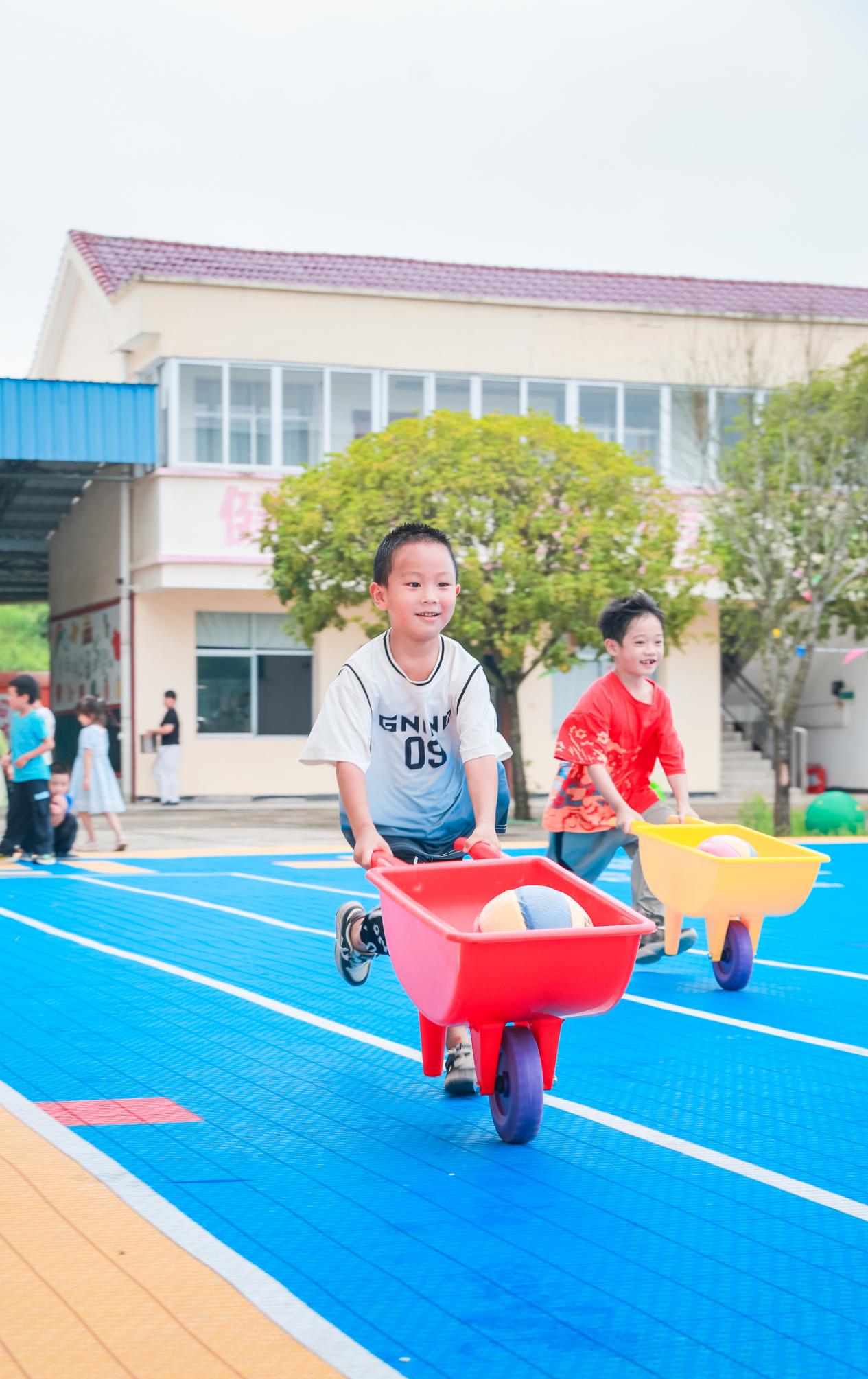 原本灰白、单调、粗糙的水泥操场“悄悄”变脸了,取而代之的是色彩鲜艳的拼接地板操场,各式各样的体育运动设施,鸭塘铺公立幼儿园的小朋友们终于迎来了自己梦寐以求的运动场地。