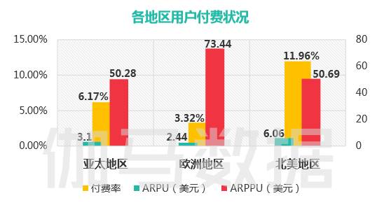 北美地区用户拥有良好的付费习惯,不仅有策略培养的高ARPU值用户,还有消除类游戏培养的大量小额付费用户。根据AppAnnie数据,2016年Q4,出口手游收入榜TOP15中,超过12款产品的主要收入来源集中于欧美市场。
