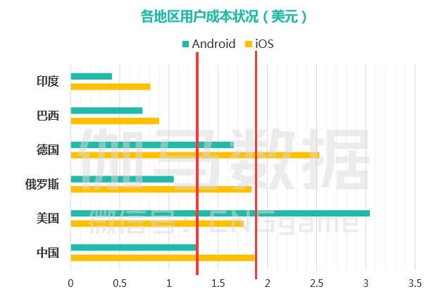对本土用户依赖度较高的日本市场,其用户拥有较高的付费价值,而面对用户基数小且已有大量本土产品选择下,在这样的市场获取用户的成本也相对较大。欧美地区也获取用户成本略高于国内市场。东南亚、中东、北非等新兴市场更容易吸引用户,且推广成本低,更易获得先机优势。这也是为什么中国出海新军总是朝着东南亚、中东、北非等新兴市场去的原因。