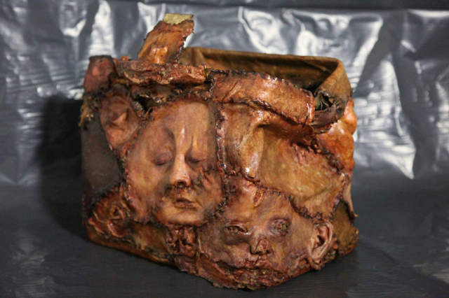 就是以硅胶捏成的人脸和褶皱,模仿将人脸皮服缝制在一起的效果。▼