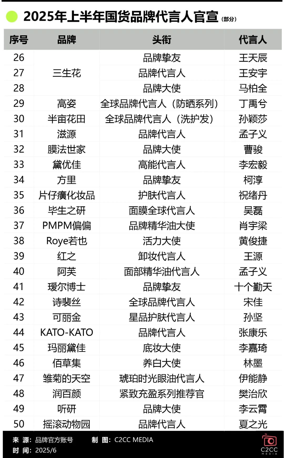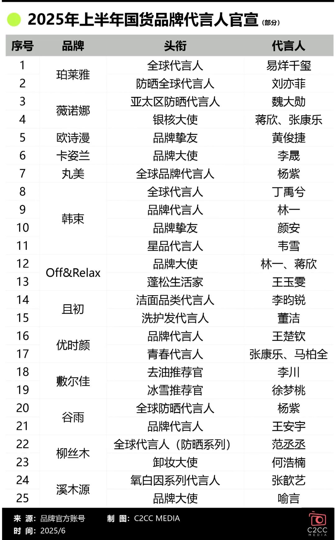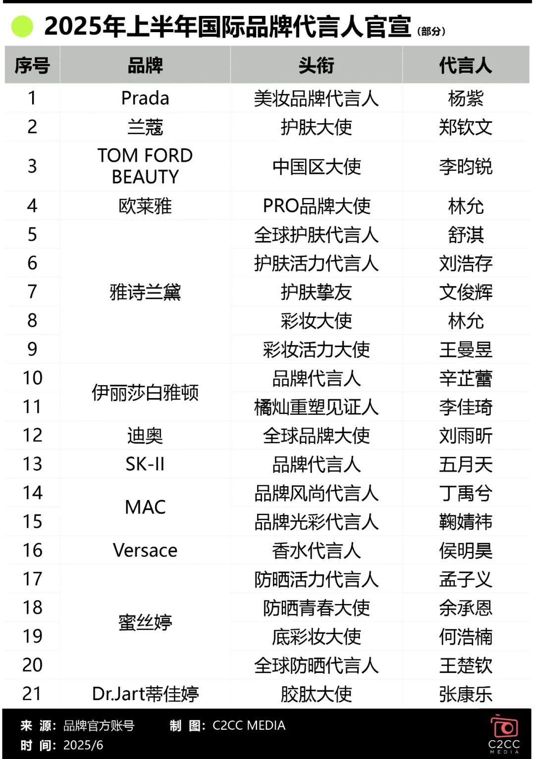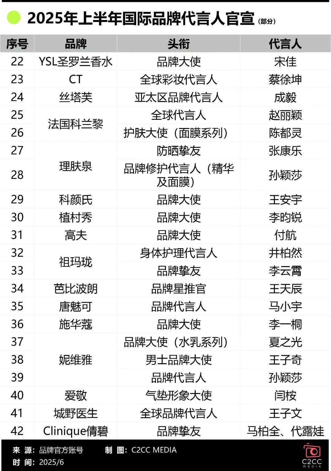 据C2CC传媒不完全统计,2025年上半年品牌官宣代言人事件多达180+。