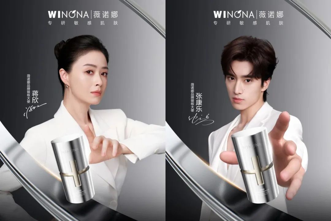 今年4月,薇诺娜陆续官宣国民演员蒋欣、新生代演员张康乐成为品牌银核大使,并推出凝时系列新品银核霜、银核精华。实现组合优势的最大化的同时,吸引不同年龄段、不同消费层次的消费者,促成品牌的多元化传播。