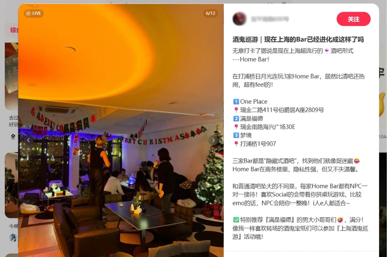 从市场角度看,家庭酒吧的出现填补了一个空白:它既满足了年轻人对轻社交、低消费夜间生活的需求,又减弱了传统酒吧的喧嚣与压力。在社交媒体裂变式传播的助推下,这种"客厅社交"新形态正从亚文化圈层走向大众视野。虽然目前仍属小众,但其展现出的社群黏性和场景延展性,不仅为夜间经济注入了新活力,更可能催生“居家+社交”的复合型消费新业态。
