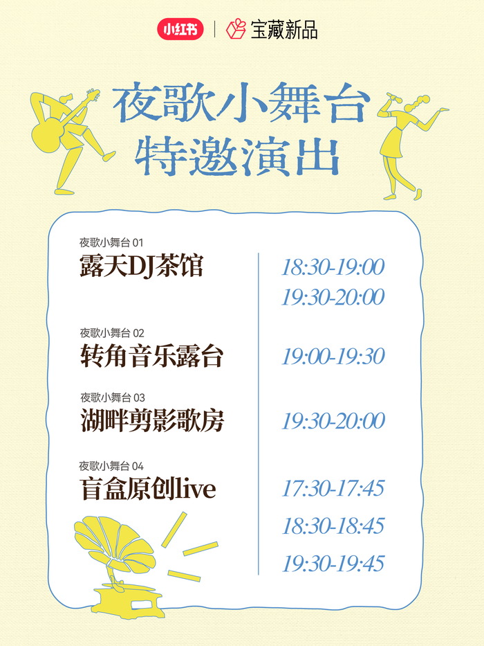 在小红书与湖南娱乐联合呈现的主舞台上,情歌大师、霸榜领袖王靖雯,爵士诗人、金曲奖新锐裘德,舞台王者、唱跳ACE王广允将带来一个个关于“新”的生活夜歌;慢聊宝藏种草官、爆梗制造机李诞,小红书美妆薯、时尚薯、手工薯、运动薯、音乐薯将探索一个个关于“新”的生活方式;8大宝藏品牌、10+新友品牌、25+长沙当红主理人快闪市集将提出一个个关于“新”的生活提案。