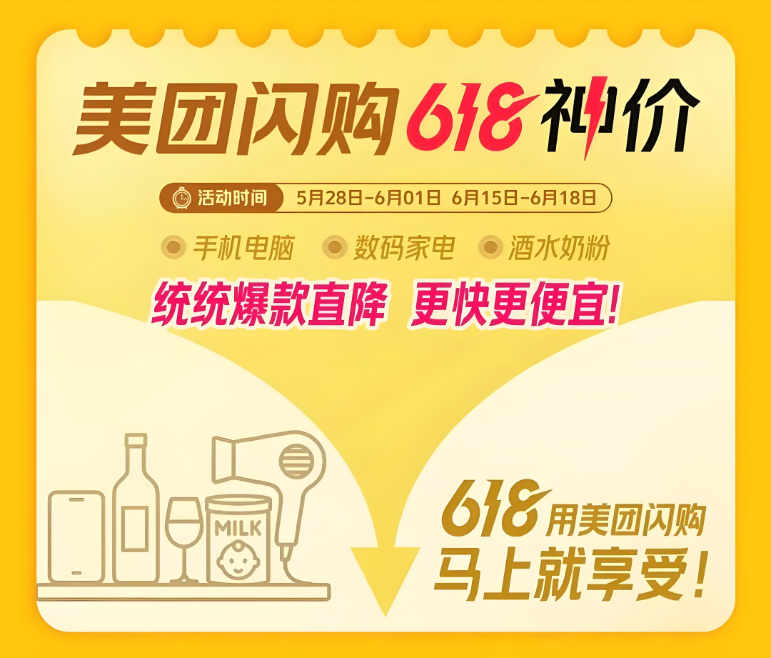 这次618无缝衔接了京东年后发起的外卖大战,美团和饿了么先后入局,一路补贴到618前夕。美团更是在5月27日正式宣布加入618,美团闪购上线的“618神价”活动中,4000元出头的iPhone 16、一分钱不加价的飞天茅台等正品尖货,不仅在优惠力度上不输传统电商,即点即送更是成为核心亮点。
