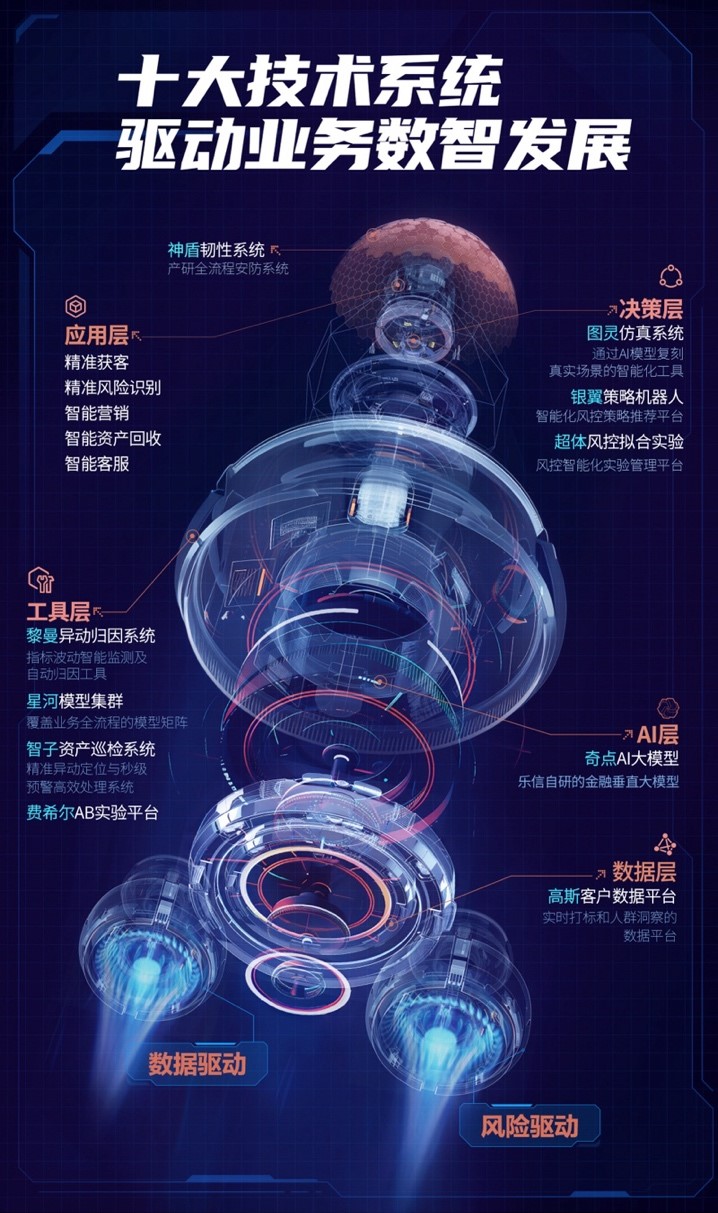 除AI智能体、大模型等探索外,目前乐信AI技术探索还覆盖了从营销获客、风控、贷后管理等数字信贷全流程,包括数据资产标准化工具“高斯”客户数据平台、智能分析工具“黎曼”异动归因系统、助力决策智能化的“图灵”仿真系统、智能化风控策略推荐平台等。正是得益于技术、风控等底层能力的夯实与提升,2025年一季度,乐信大盘风险逐季下降、利润率逐季上升,利润(Non-GAAP EBIT)5.8亿元创13个季度以来最高,业绩稳健增长。